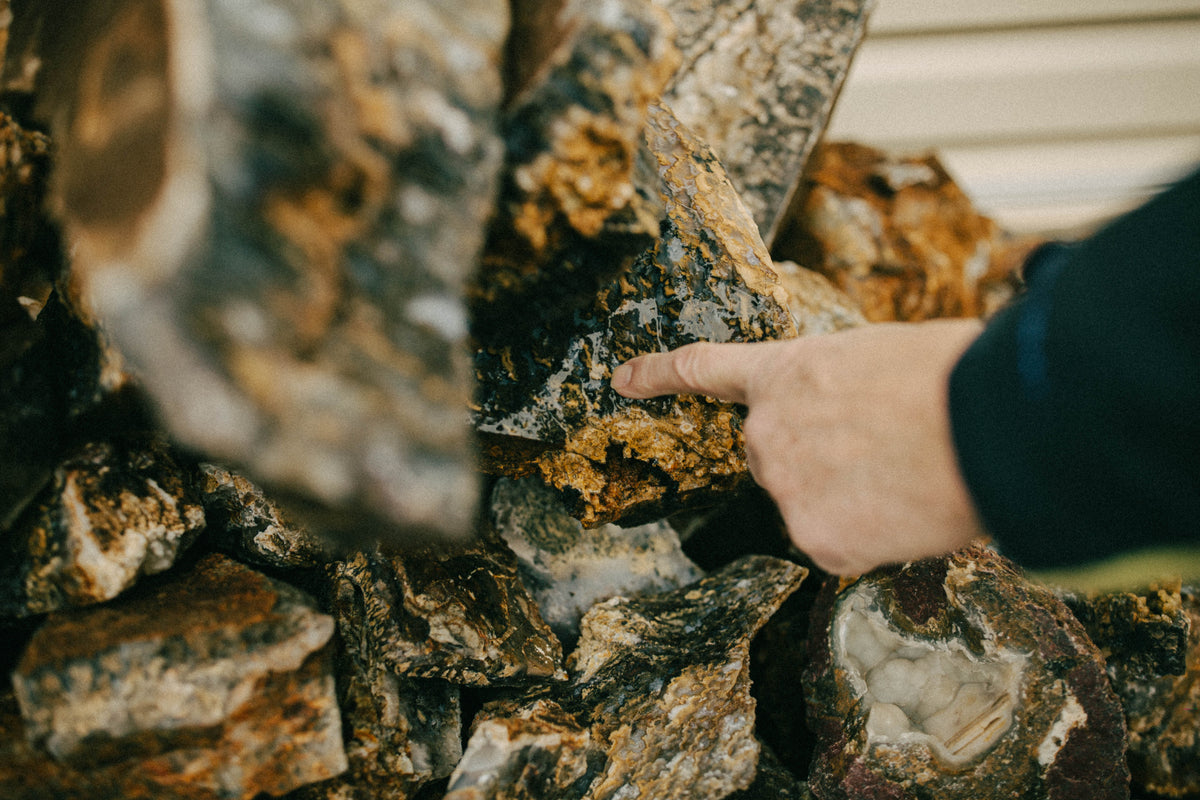 Mark started rockhounding at twelve. After asking a shop owner how to pass the time in Kuna he was told, “Go find some rocks.” Soon enough, he stumbled upon Potato Agate. The owner assumed all of the agate was dug up however Mark obtained about one hundred pounds of it. That was the dig that started him on the path of lifelong curiosity. Years later, he bought the Graveyard Point Plume Agate Claim and named it after his wife, Mary-Lee. He was spending most of his weeks exploring and digging for new gems, on the hunt for his next challenge. Even after decades, the thrill of discovery hasn’t faded, if anything it's continued to grow.